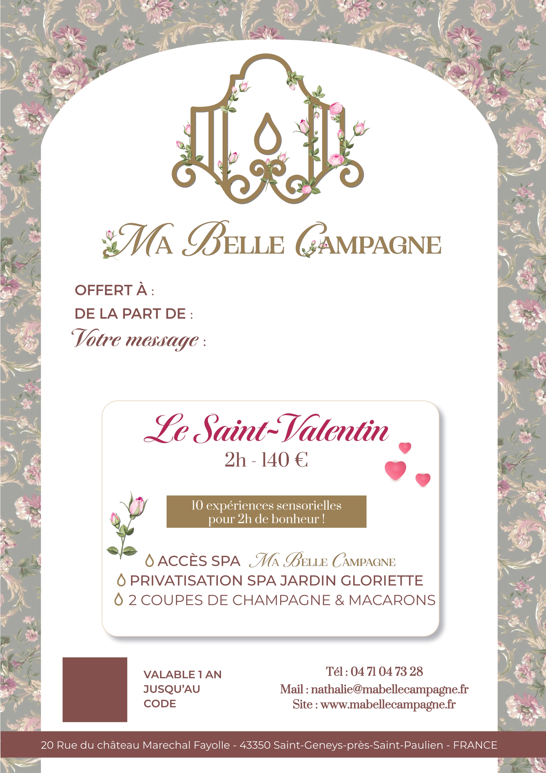 Ma Belle Campagne est situé à Saint-Geneys Près St-Paulien. Nous proposons un large éventail de services, y compris un spa avec piscine, hammam, sauna, jacuzzis extérieurs privatisés, massages, cryothérapie, salon de coiffure, esthétique, salles pour séminaires et formations d’entreprises, boutique de prêt-à-porter, ainsi que la location de deux meublés de tourisme avec accès au spa.